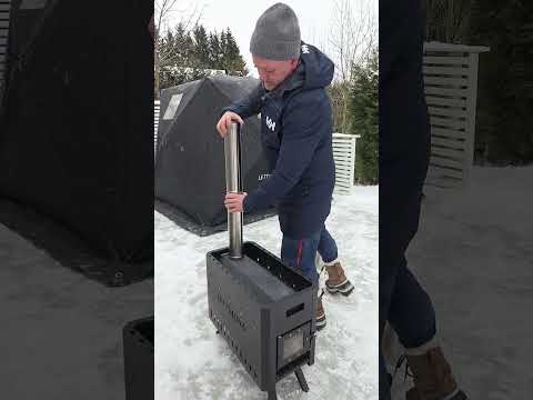 Et pop-up telt, en solid vedovn og god bjørkeved gir deg den autentiske, gode saunafølelsen.