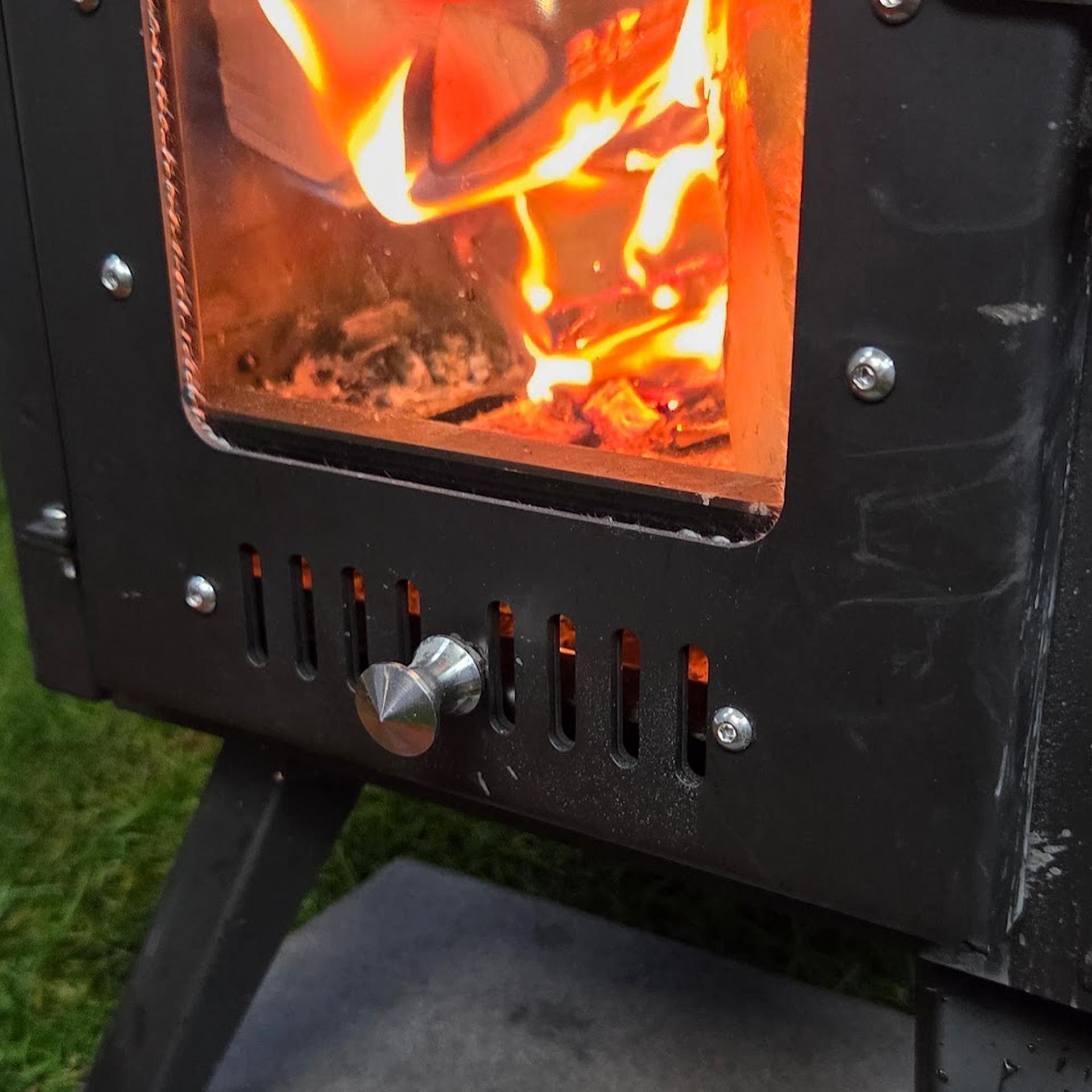 Dette er for å fjerne rester og avgasser fra produksjon. La ovnen brenne i 1-2 timer ute før den brukes inne i teltet første gang.